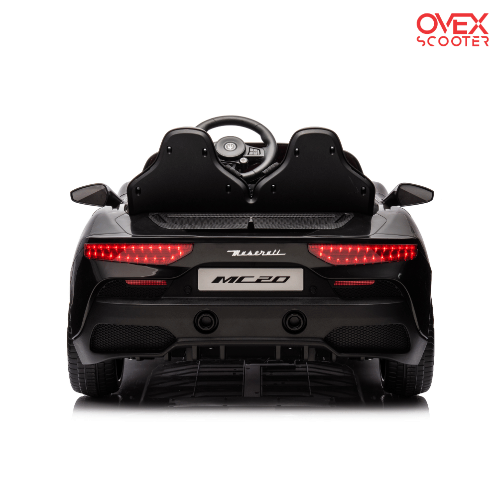 Coche eléctrico infantil Maserati MC20. Un coche de batería para niños con licencia oficial Maserati. Espacioso, cómodo y con asiento biplaza para llevar a un pequeño acompañante a bordo.