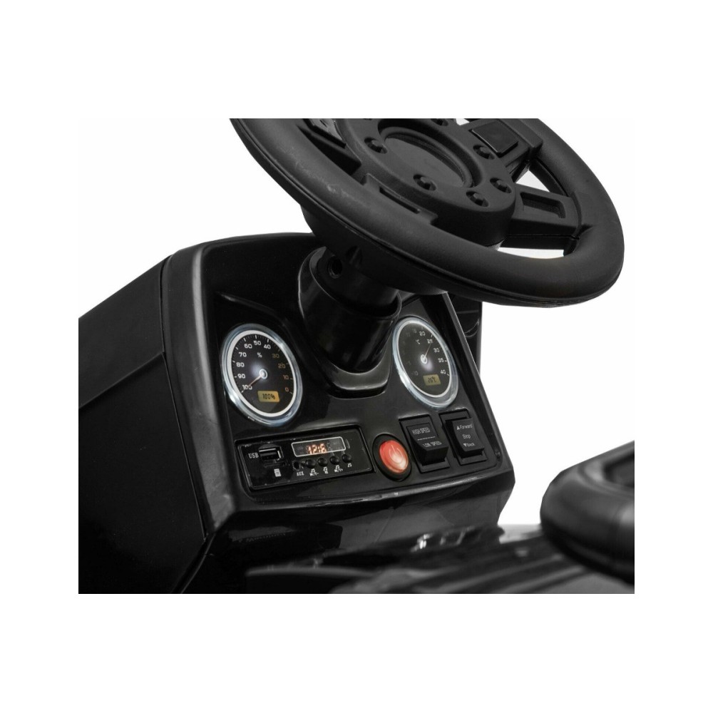 Tractor para niños equipado con 2 motores de 45W y 1 batería de 12V 10Ah. Dispone de asiento de cuero para mayor comodidad y cinturón de seguridad.
