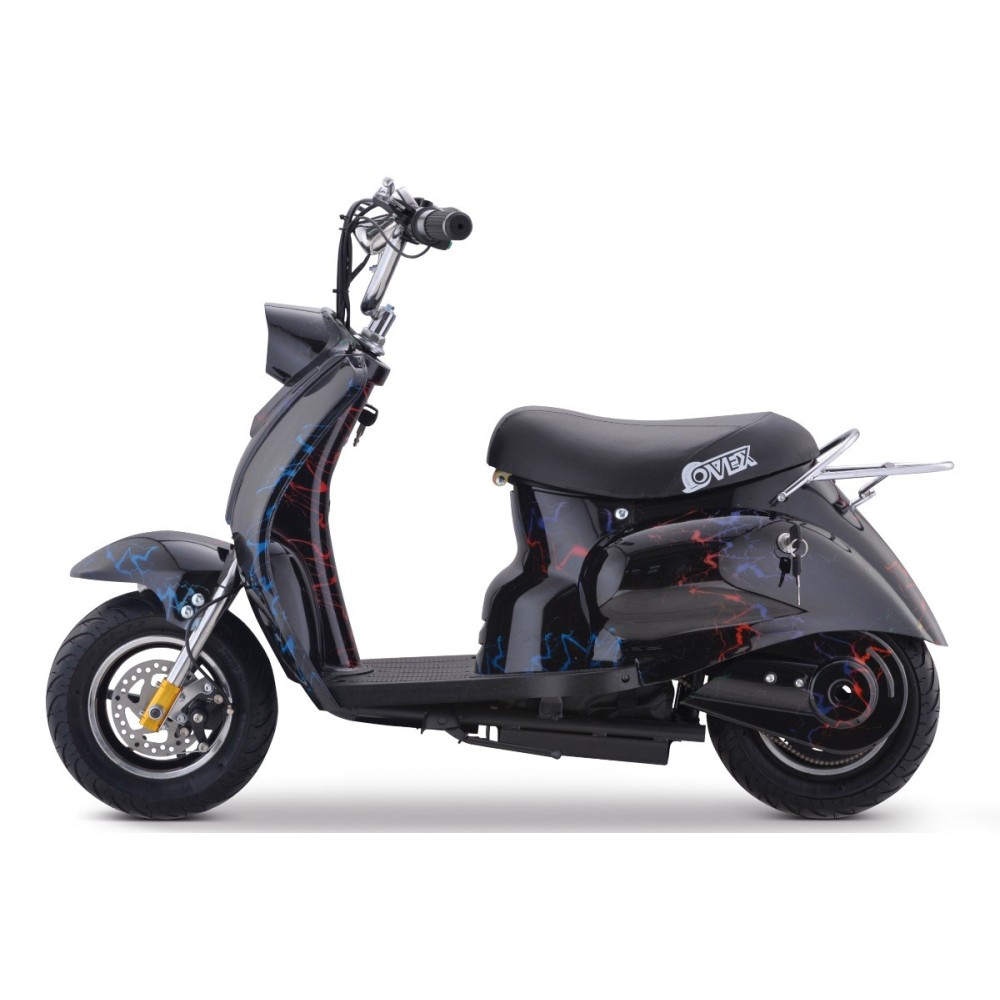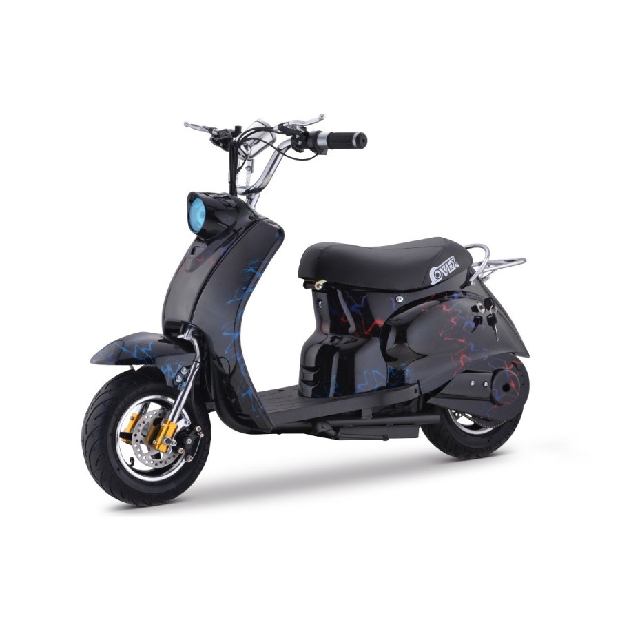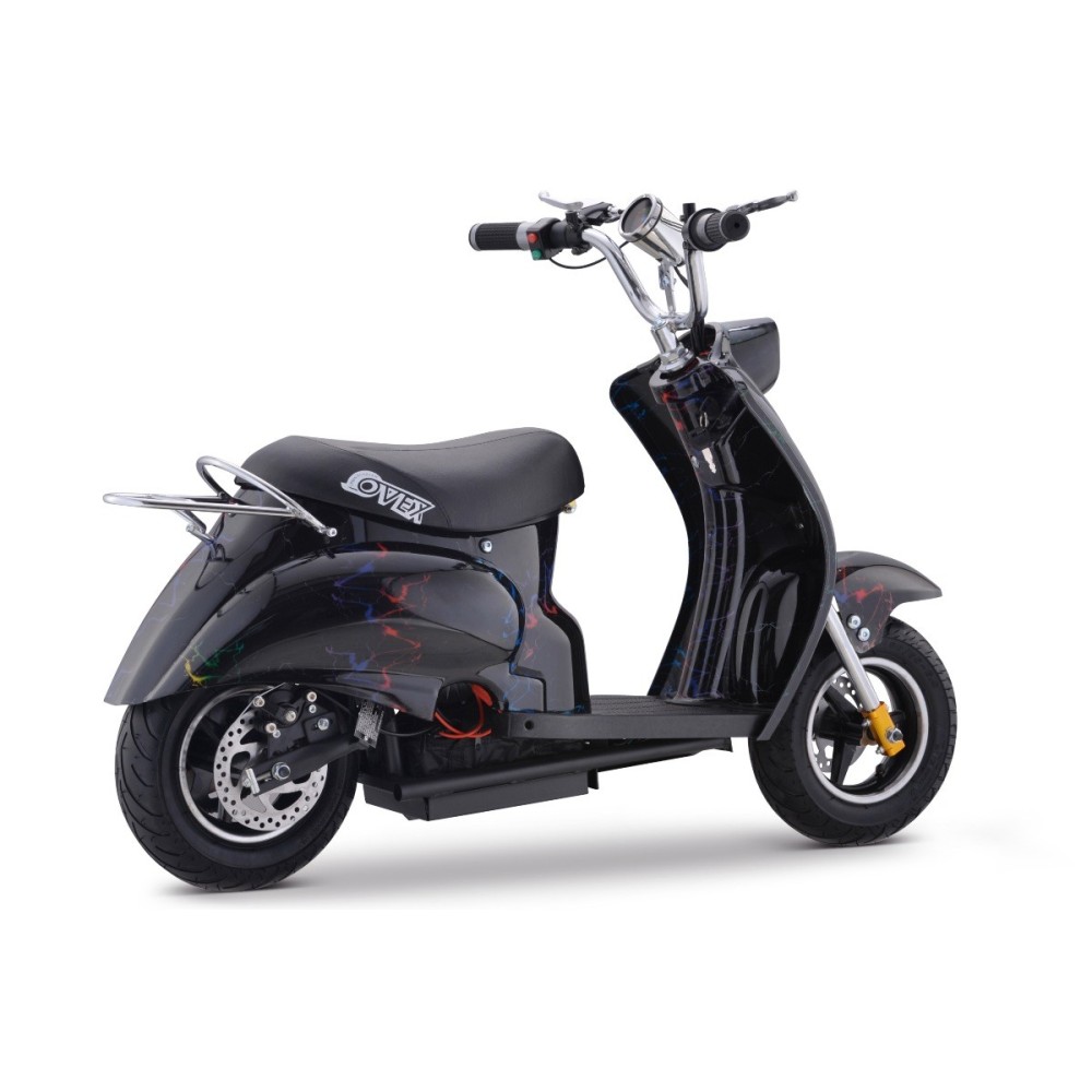 Vespa para niños marca OVEX con llantas de 6,5" y con neumáticos de asfalto y frenos de disco.