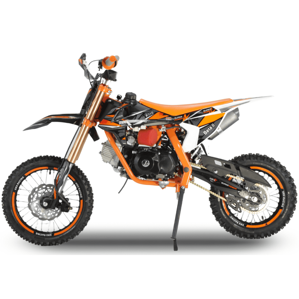 KRX BETA II, una pitbike de la última gama de KRX 2023. Dispone de motor compacto de 125cc de 4 tiempos. Mayor agarre y estabilidad con sus ruedas de 14/12", equipadas con frenos de disco hidráulicos en sus ruedas delanteras y traseras.