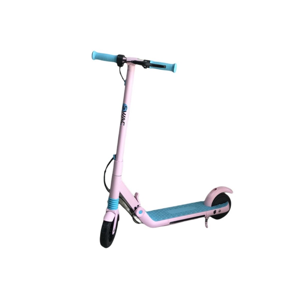 Patinete eléctrico infantil OVEX SWAG disponible en color azul y rosa. Equipado con motor de 130W y batería de litio 21.6V/2.5Ah.
