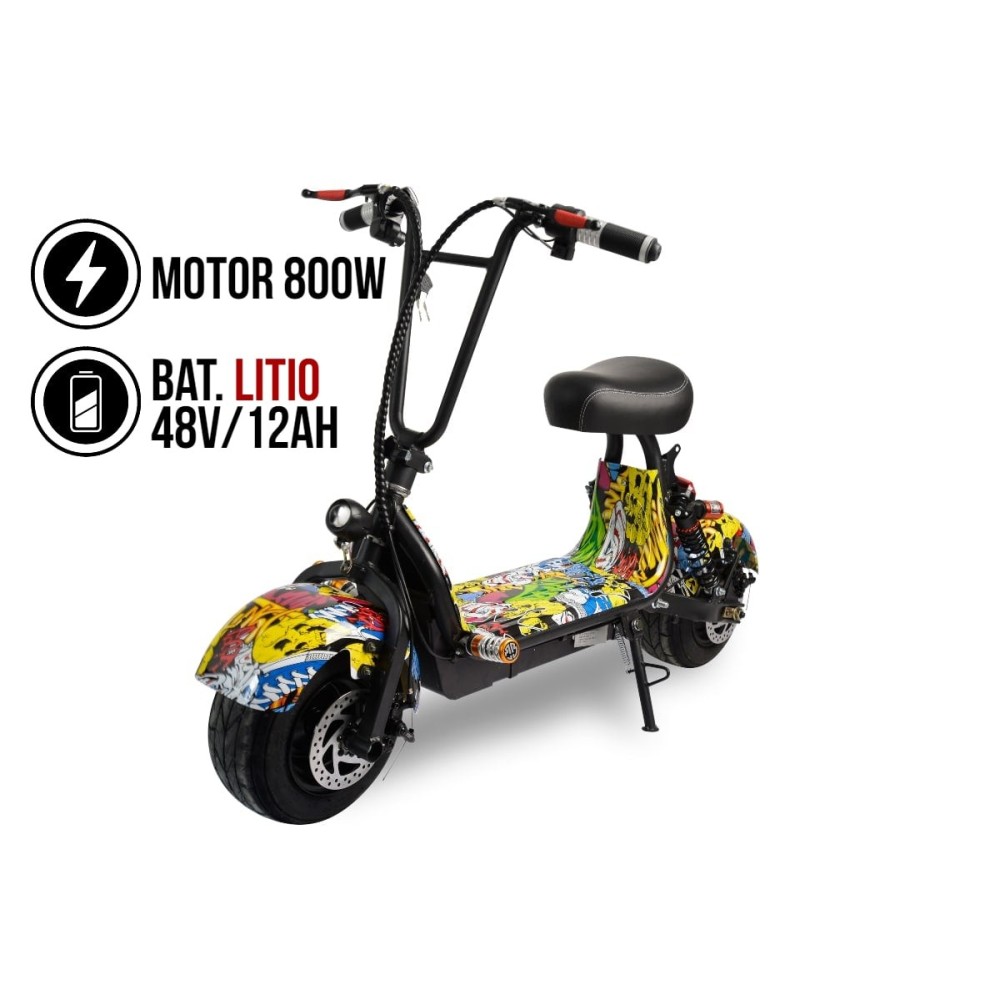 Mini citycoco Switch OVEX SCOOTER, patinete eléctrico tipo Harley equipado con motor de 800W hub y batería de litio 48V/12Ah para un máximo rendimiento.